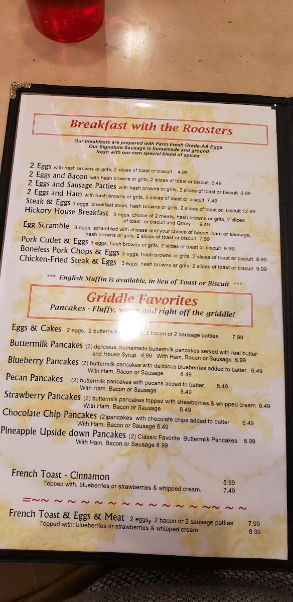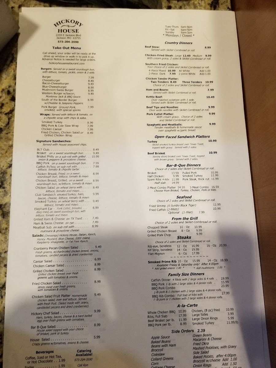 Hickory House Restaurant Menu
