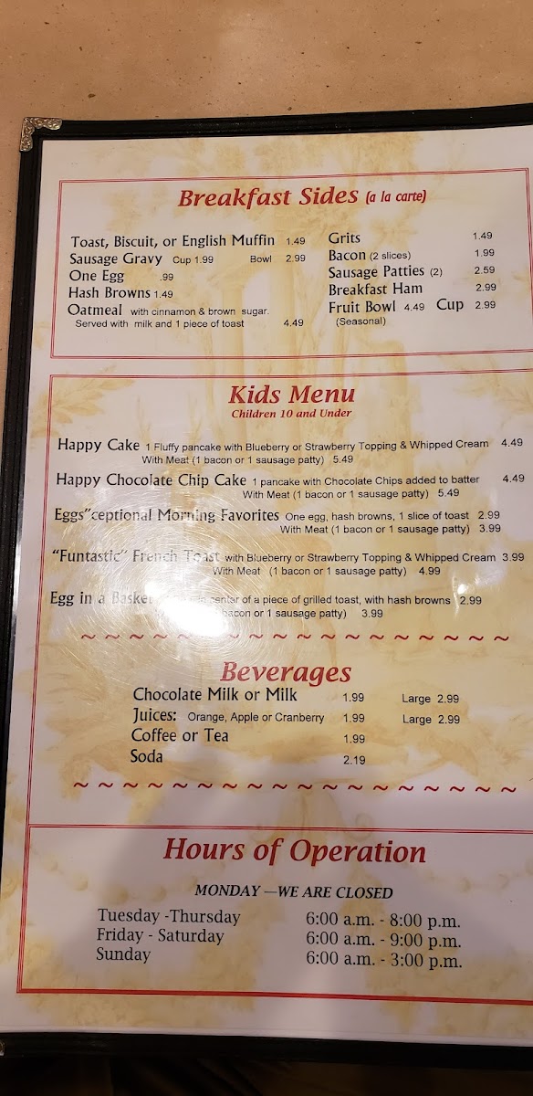The menu at Hickory House Restaurant offers a straightforward, comforting selection that reflects its Southern-inspired American roots. Ideal for breakfast or a casual lunch, their offerings center around classic, hearty dishes enjoyed in a relaxed, welcoming setting.